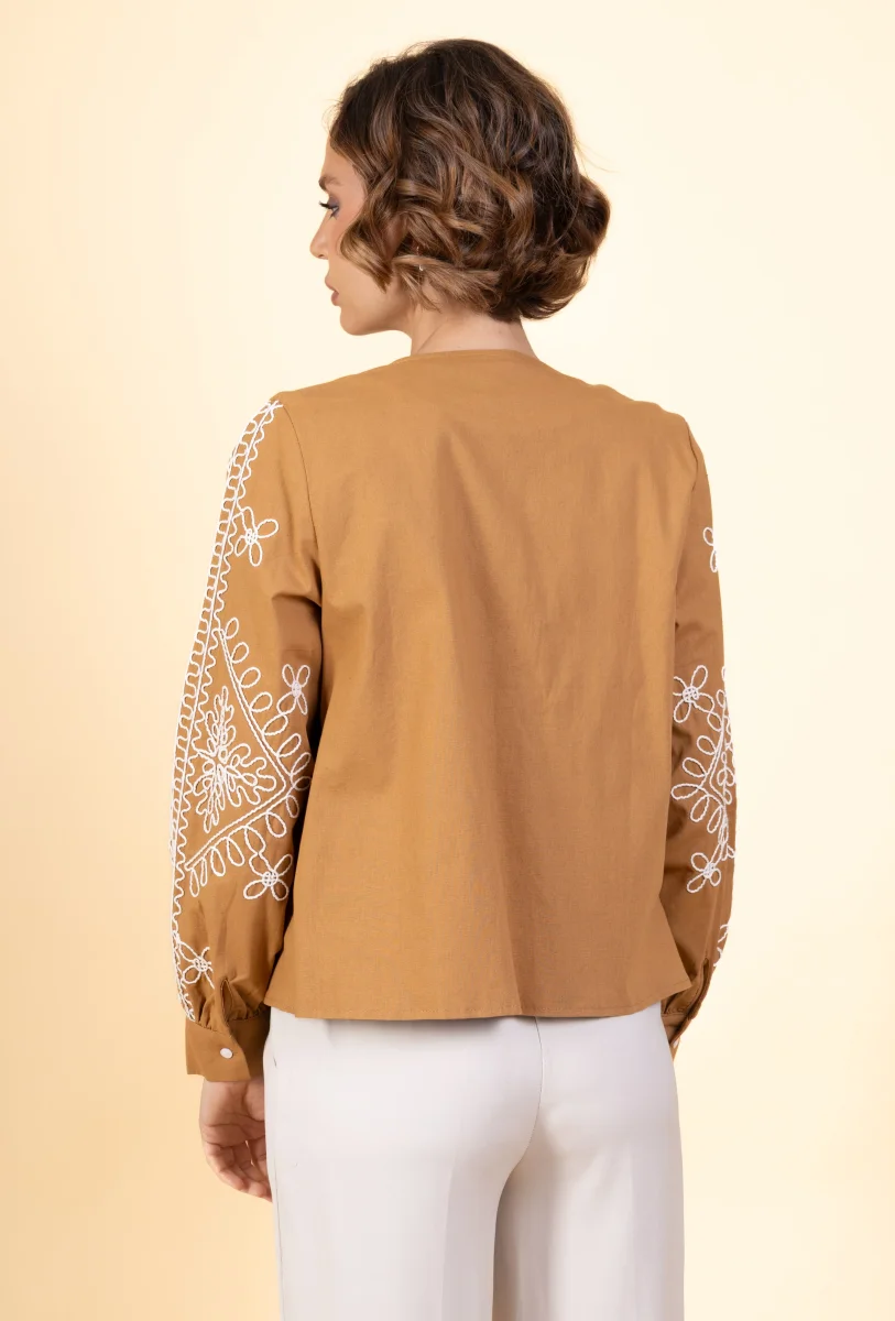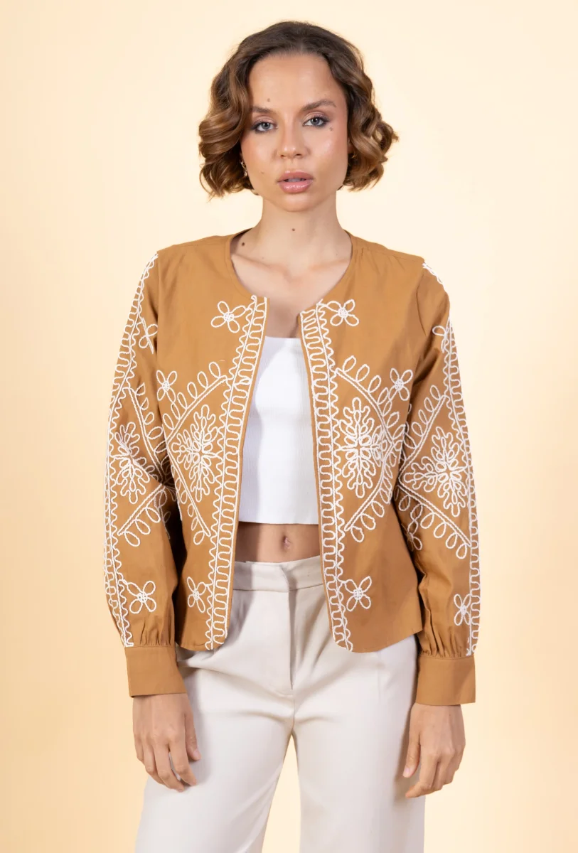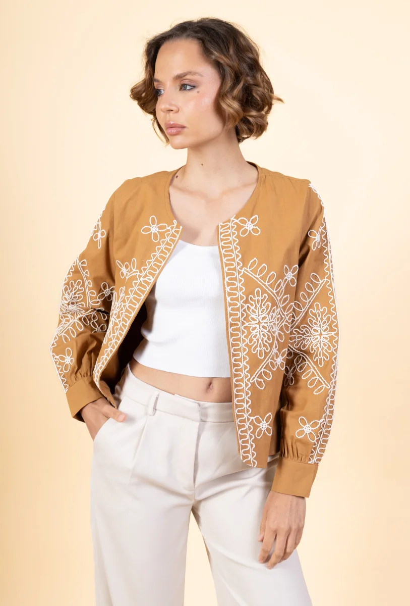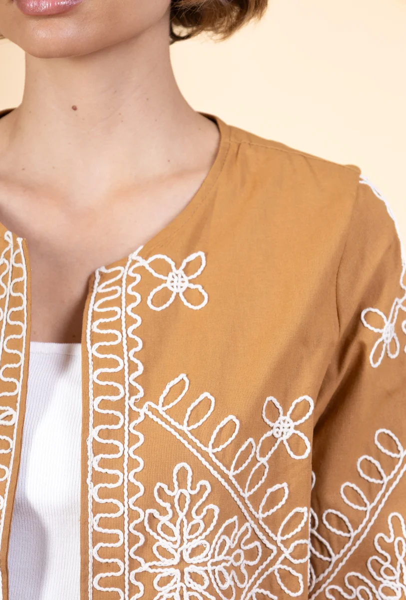 Veste Marthe • Manches longues • Col rond • Sans fermeture • Broderies Matière & EntretienLa veste est composée à 100% de coton.Préférez un lavage en machine à 30°, programme délicat.Séchage et repassage à faible température.Evitez le sèche linge !