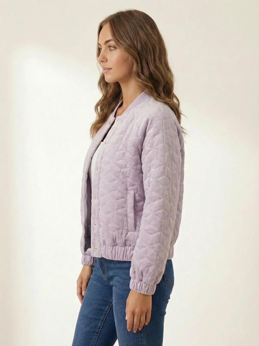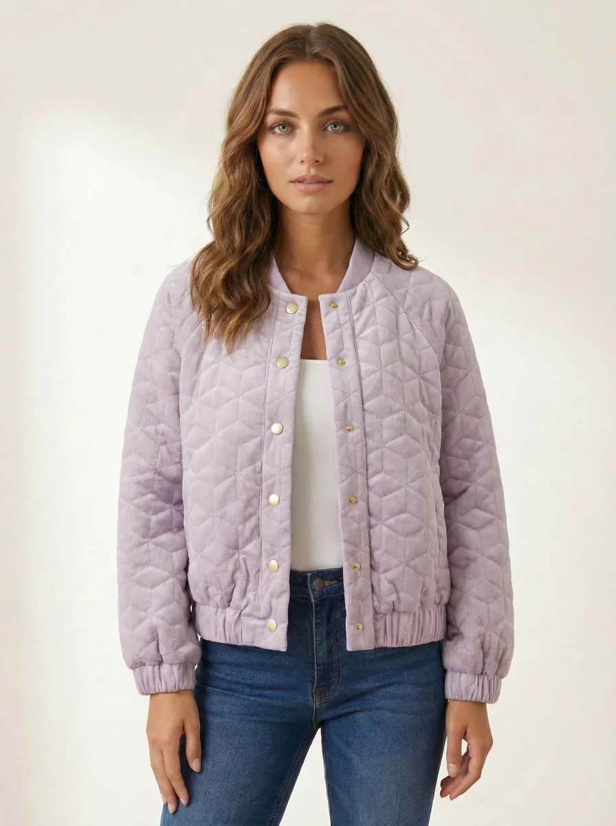 Veste matelassée Marty • Coupe bombers • Touché velours • Matelassée • Manches et bas de veste elastiquées • Boutons pressions • Sans doublure Matière & EntretienLa veste est composée à 100% de polyester.Préférez un lavage en machine à 30°, programme délicat.Séchage et repassage à faible température.Evitez le sèche linge !