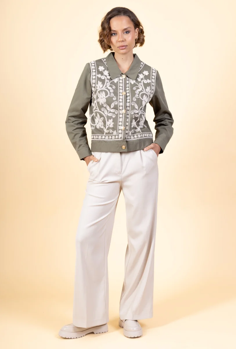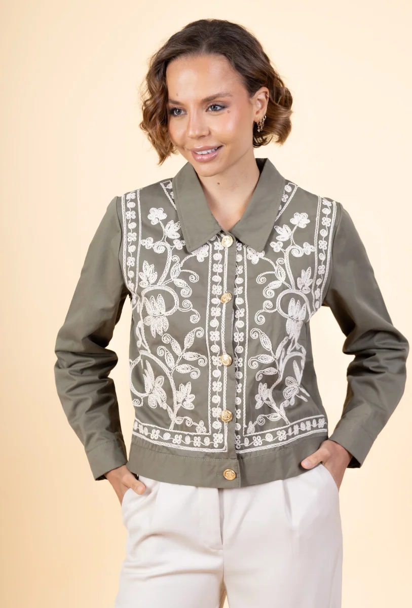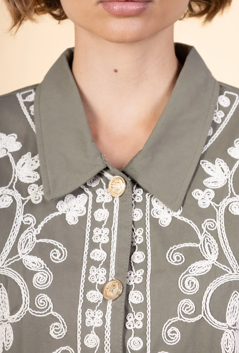 Veste Nanor • Manches longues • Col chemise • Fermeture par boutons • Broderies Matière & EntretienLa veste est composée à 100% de coton.Préférez un lavage en machine à 30°, programme délicat.Séchage et repassage à faible température.Evitez le sèche linge !