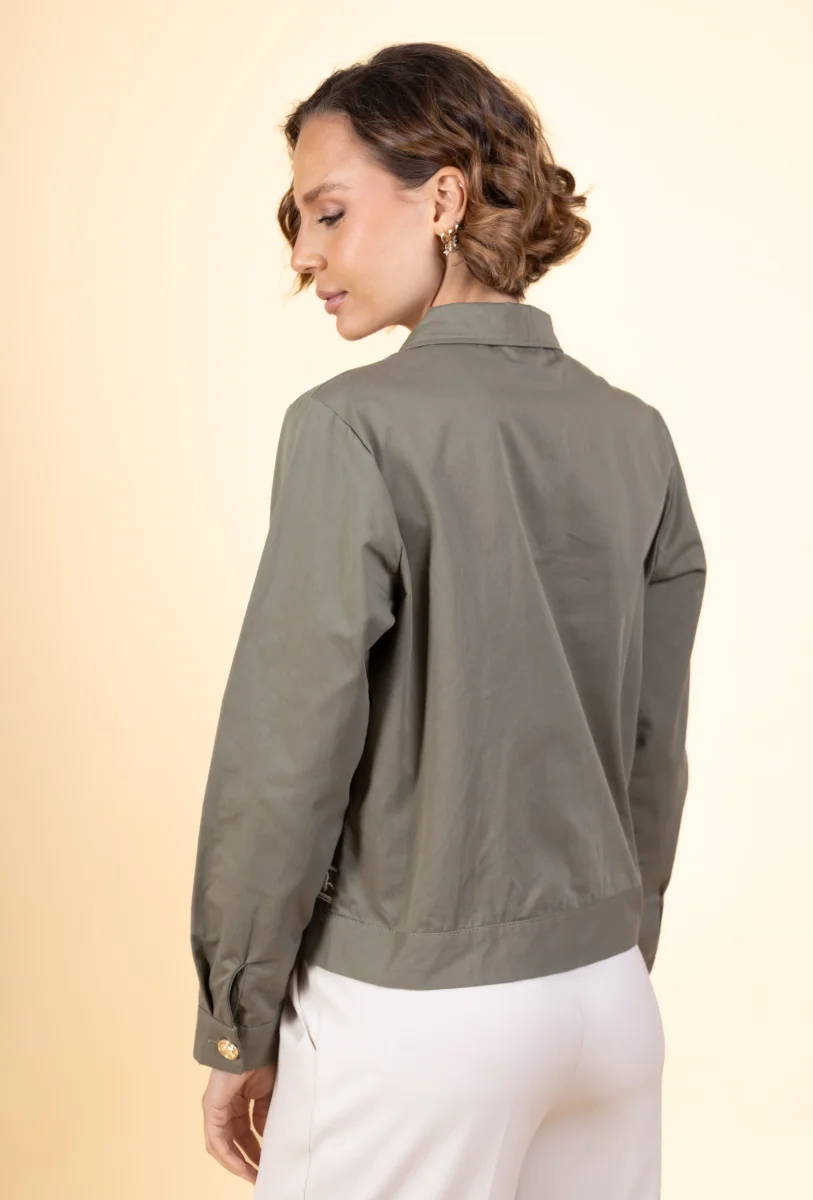 Blouson court à col chemise blanc cassé