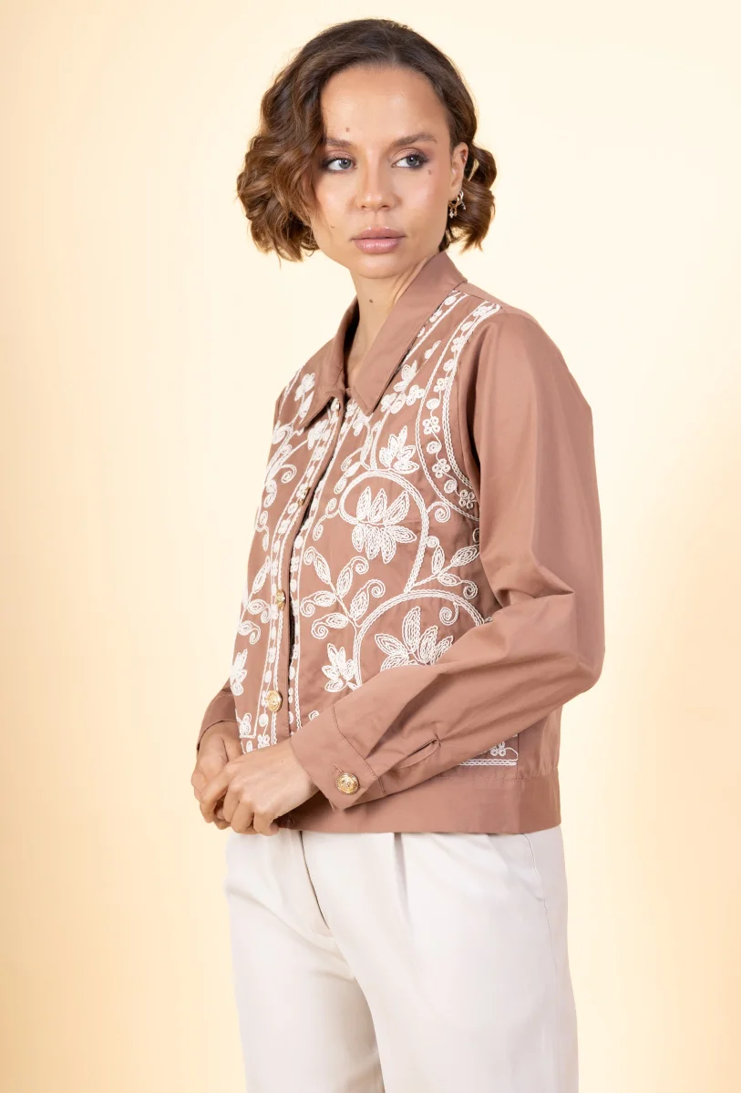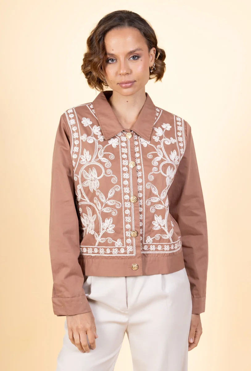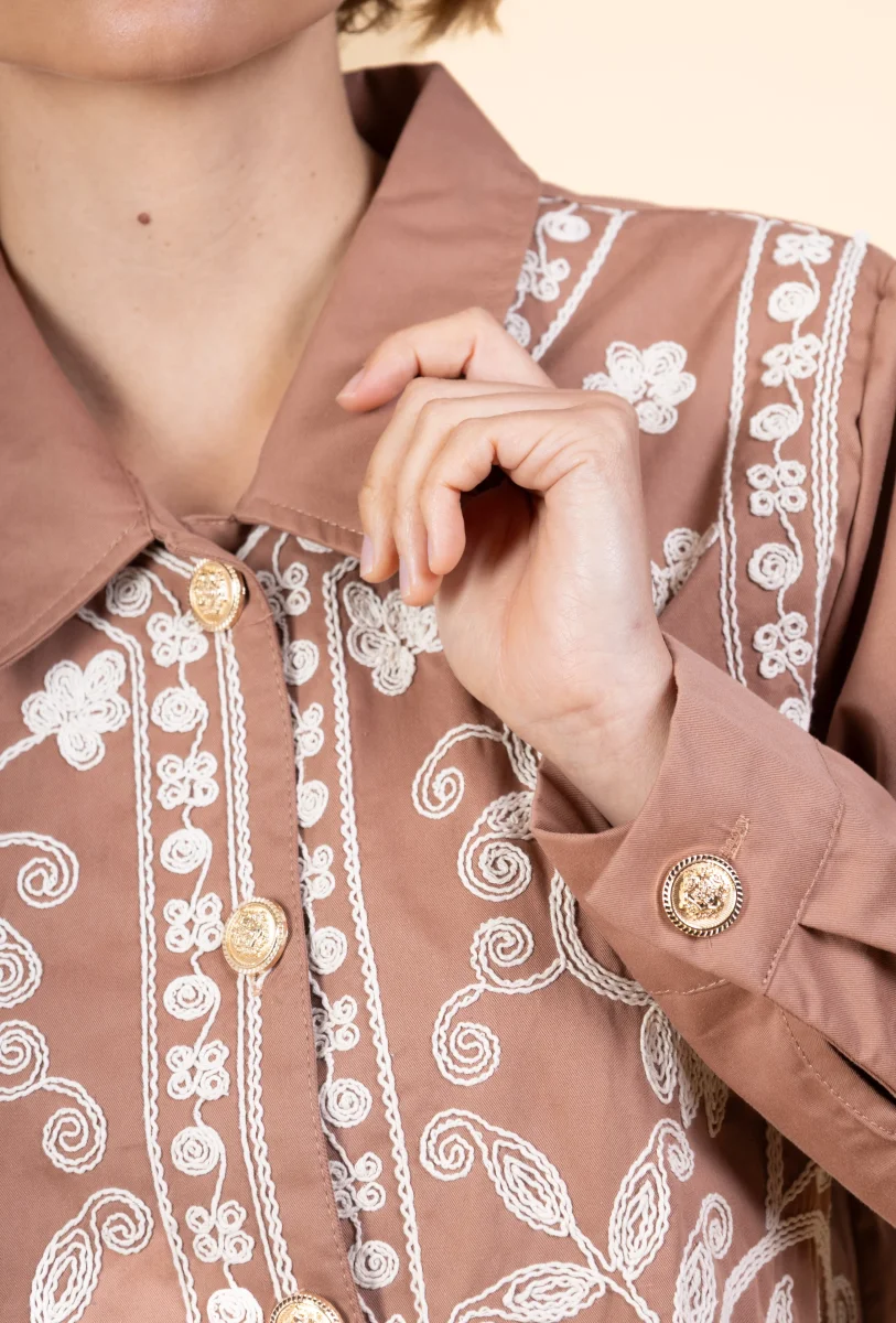 Veste Nanor • Manches longues • Col chemise • Fermeture par boutons • Broderies Matière & EntretienLa veste est composée à 100% de coton.Préférez un lavage en machine à 30°, programme délicat.Séchage et repassage à faible température.Evitez le sèche linge !