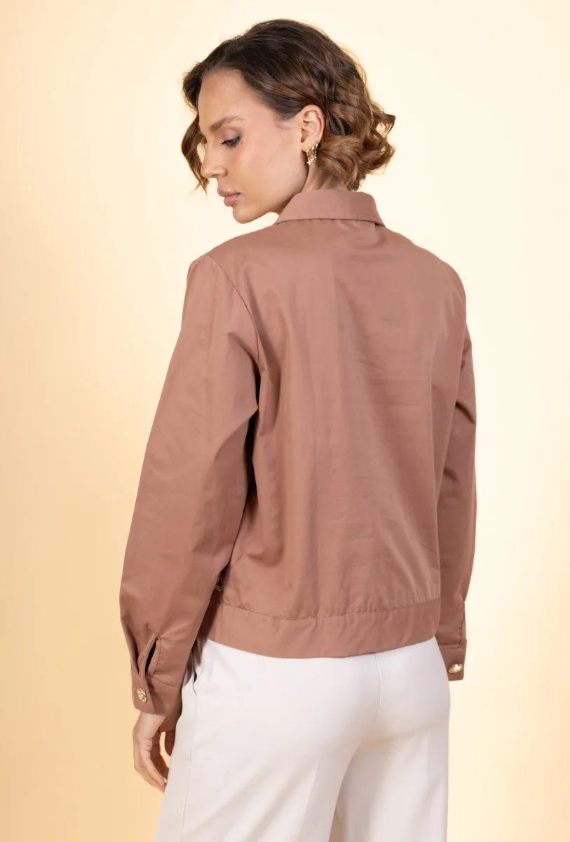 Blouson structuré en similicuir marron caramel