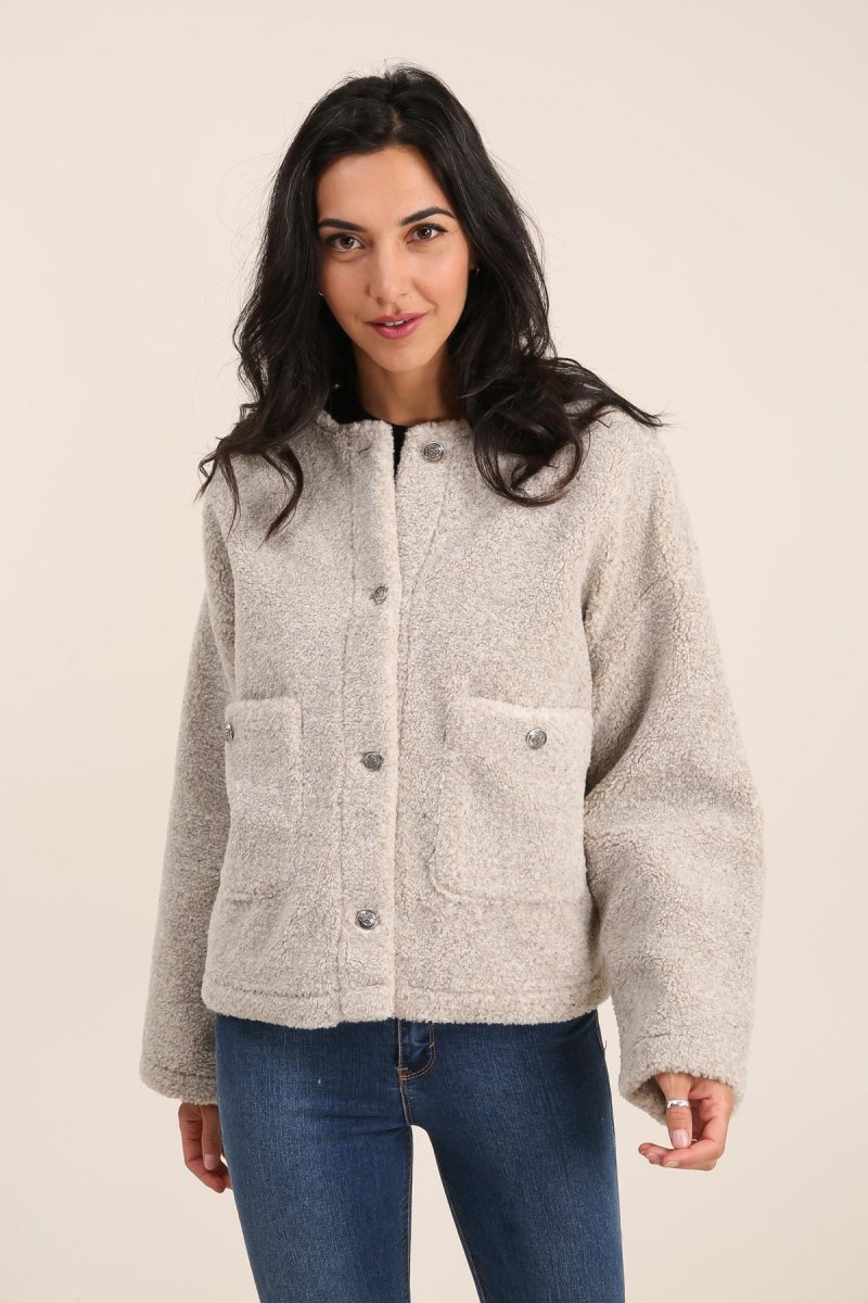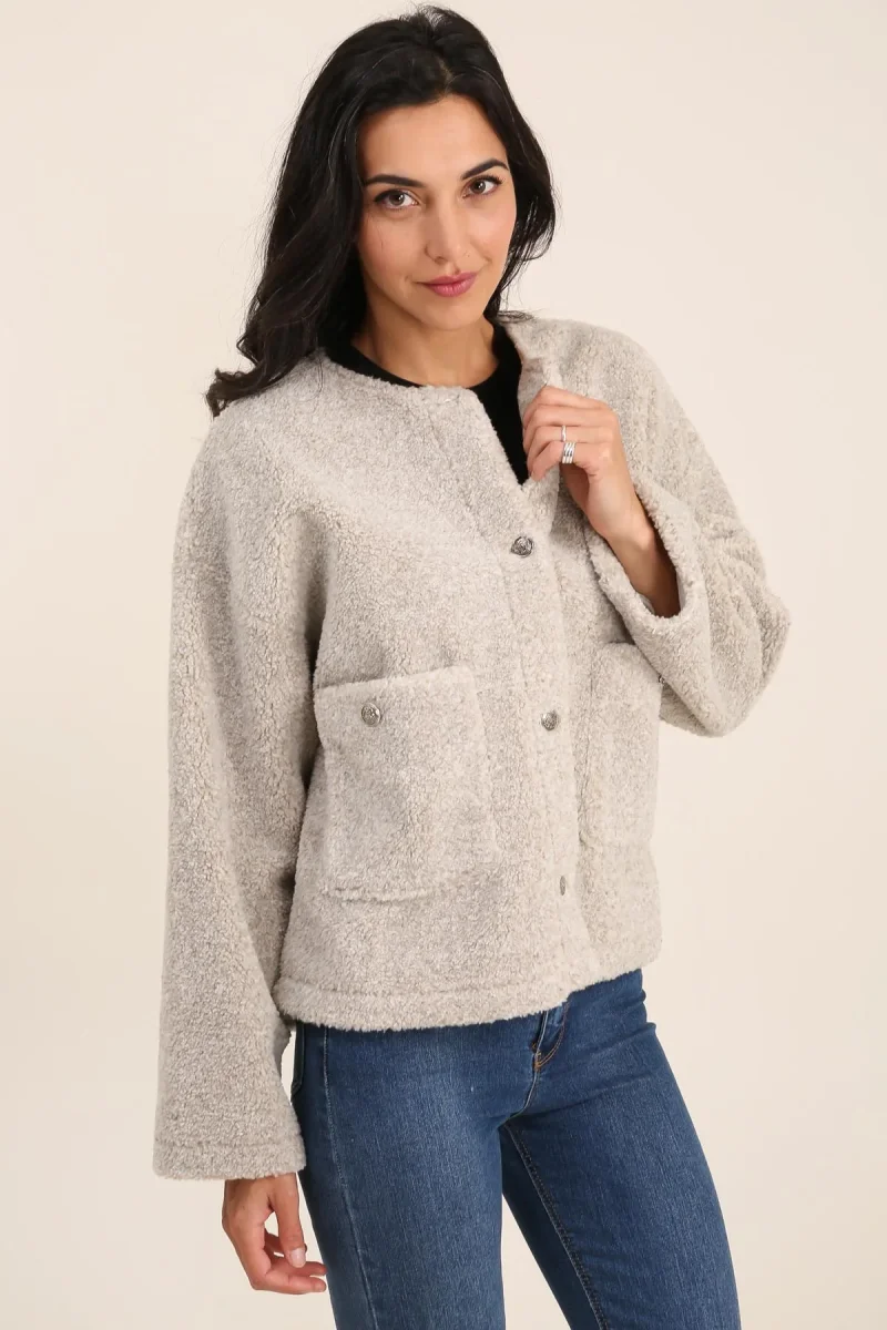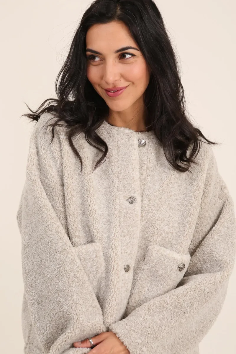 Veste Ovsanna • Manches longues • Col rond • Tissu polaire • Boutons-pression métalliques • Deux pochesMatière & EntretienLa veste est composée à 100% de polyester.Préférez un lavage en machine à 30°, programme délicat.Séchage et repassage à faible température.Evitez le sèche linge !