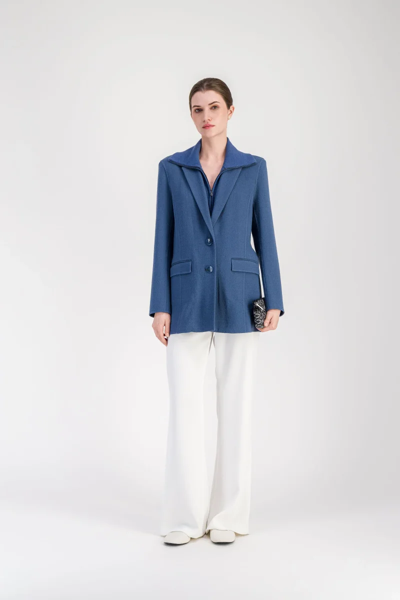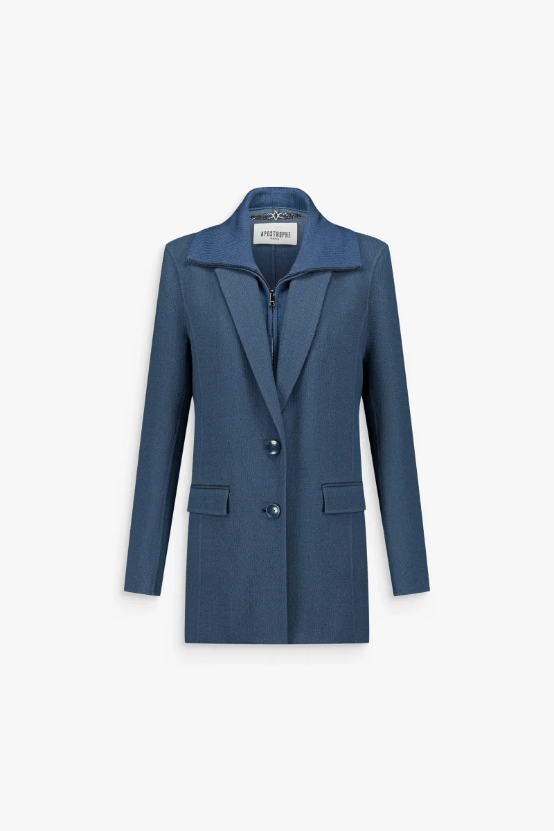 Soyez le premier à laisser votre avis sur “Veste tailleur bleu denim double face à col zippé”